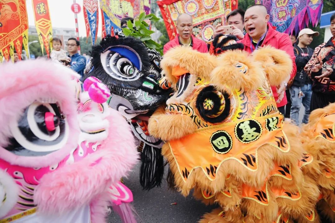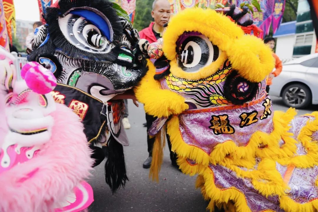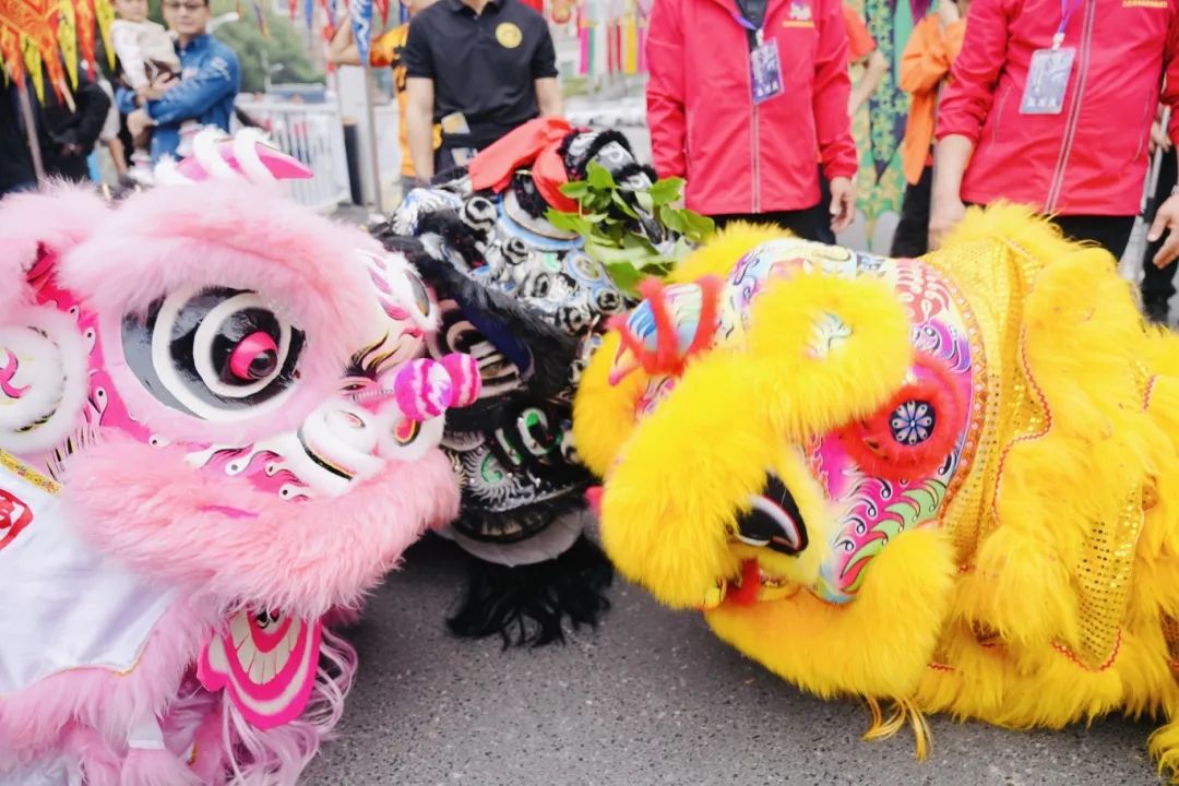 当天下午,各队伍在仙塘村委会陆续会狮,随后进行采青仪式。娇憨可爱的狮子吸引了大批观众围观。