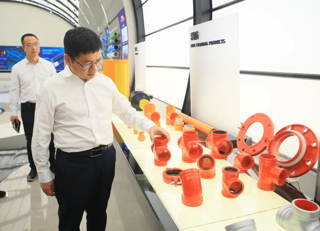 在联塑集团控股有限公司,陈新文了解企业技术研发、市场拓展及产业布局情况。他鼓励企业加强核心技术攻关,加快拓展智慧管道及多场景应用;积极开拓海外市场,开展资本并购,探索技术服务领域,带头推动产业发展环境优化,巩固提升行业龙头竞争力。