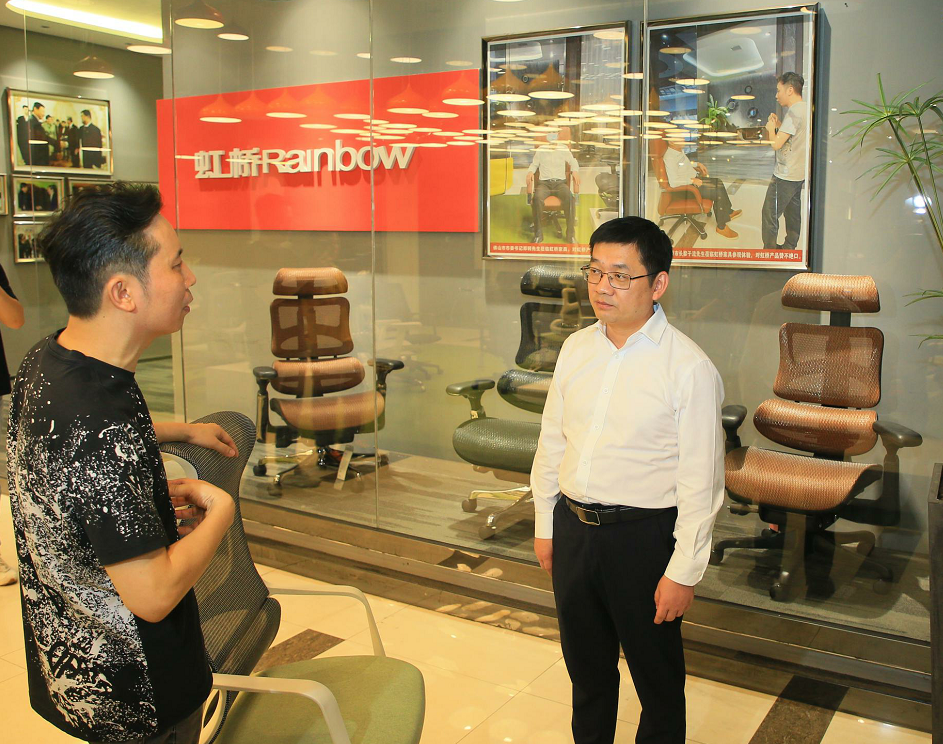 在虹桥家具有限公司,陈新文了解企业家居产品研发和数智化转型进展。他鼓励企业敏锐把握市场新趋势与新机遇,践行人文经济学理念,在注重产品研发的同时,将传统岭南文化融入设计,增强产品人文内涵与创新力,提升核心竞争力。