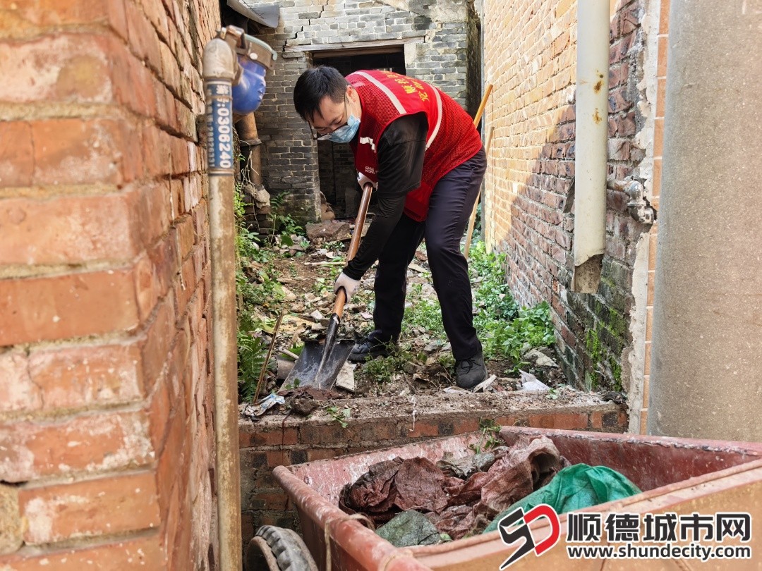 党群先锋队队员在乐从镇沙边村开展冷巷清理工作。
