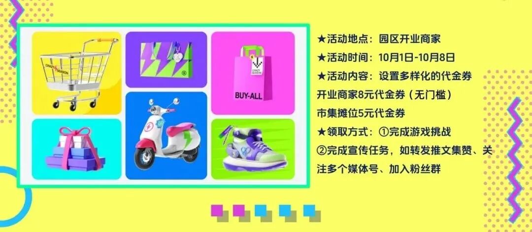 活动内容:设置多样化的代金券:开业商家代金券、市集摊位代金券。