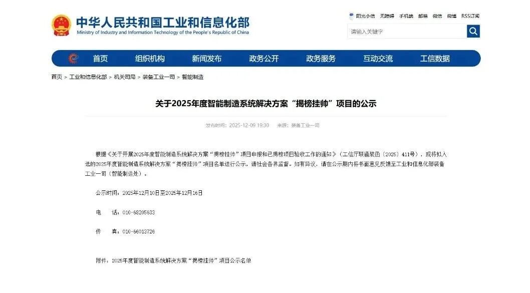 “揭榜挂帅”项目由工业和信息化部、市场监管总局联合组织开展,旨在通过竞争机制选拔具备关键技术突破能力和行业推广应用价值的智能制造系统解决方案,推动制造业智能化转型与高质量发展。