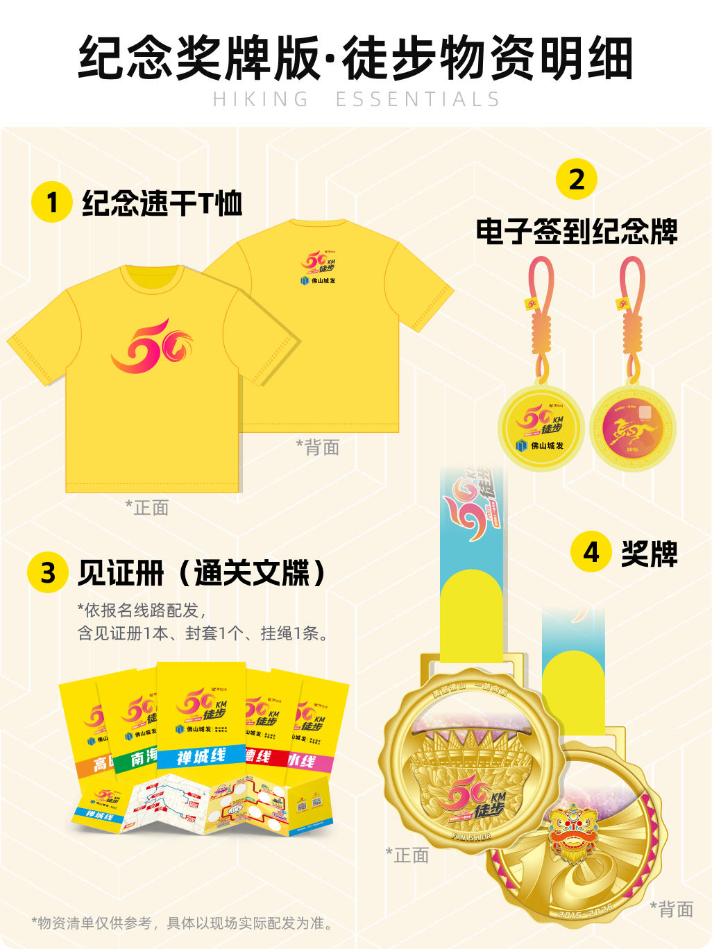 在标准版基础上,加赠“第十届佛山50公里徒步纪念奖牌”一枚。