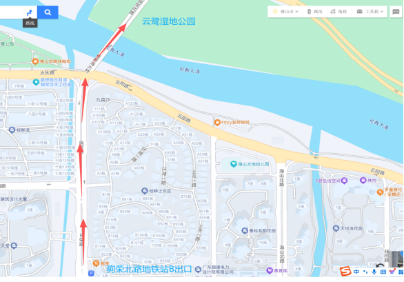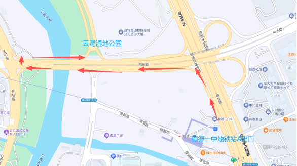 3、顺德一中地铁站A出口,距离公园约900米。市民朋友出站后,可以从碧桂路辅道人行道往东乐路方向进入公园。