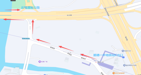 2、顺德一中地铁站C出口,距离公园约900米。市民朋友出站后,可以从德智路,东乐路进入公园。