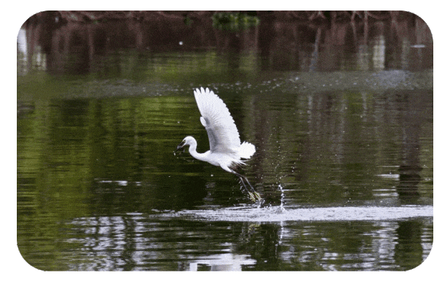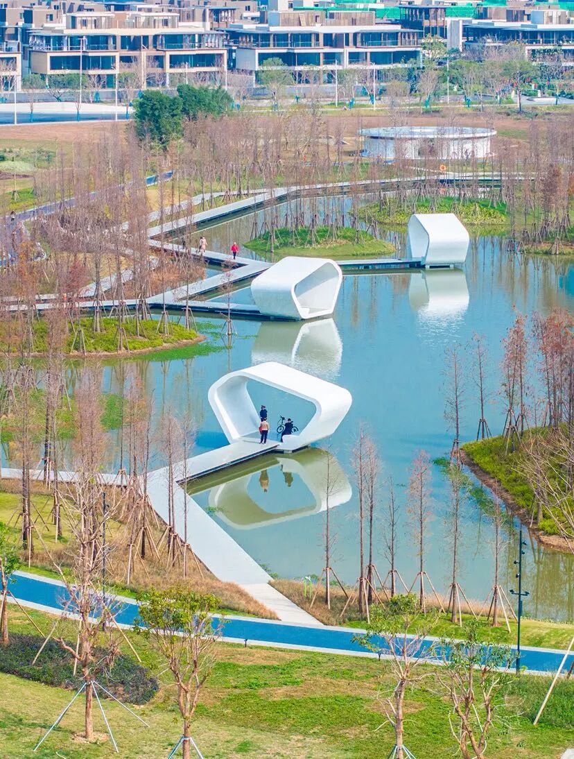 打卡「观鸟盒」,观察鹭鸟日常;登上观景台俯瞰桂畔海风光,漫步亲水栈道感受溪水潺潺;公园保留了原生鱼塘和岭南果基鱼塘生态,还划定专属鹭鸟保育区,边走边给孩子讲讲自然奥秘,沉浸式体验“人在画中游,鸟在画中栖”。