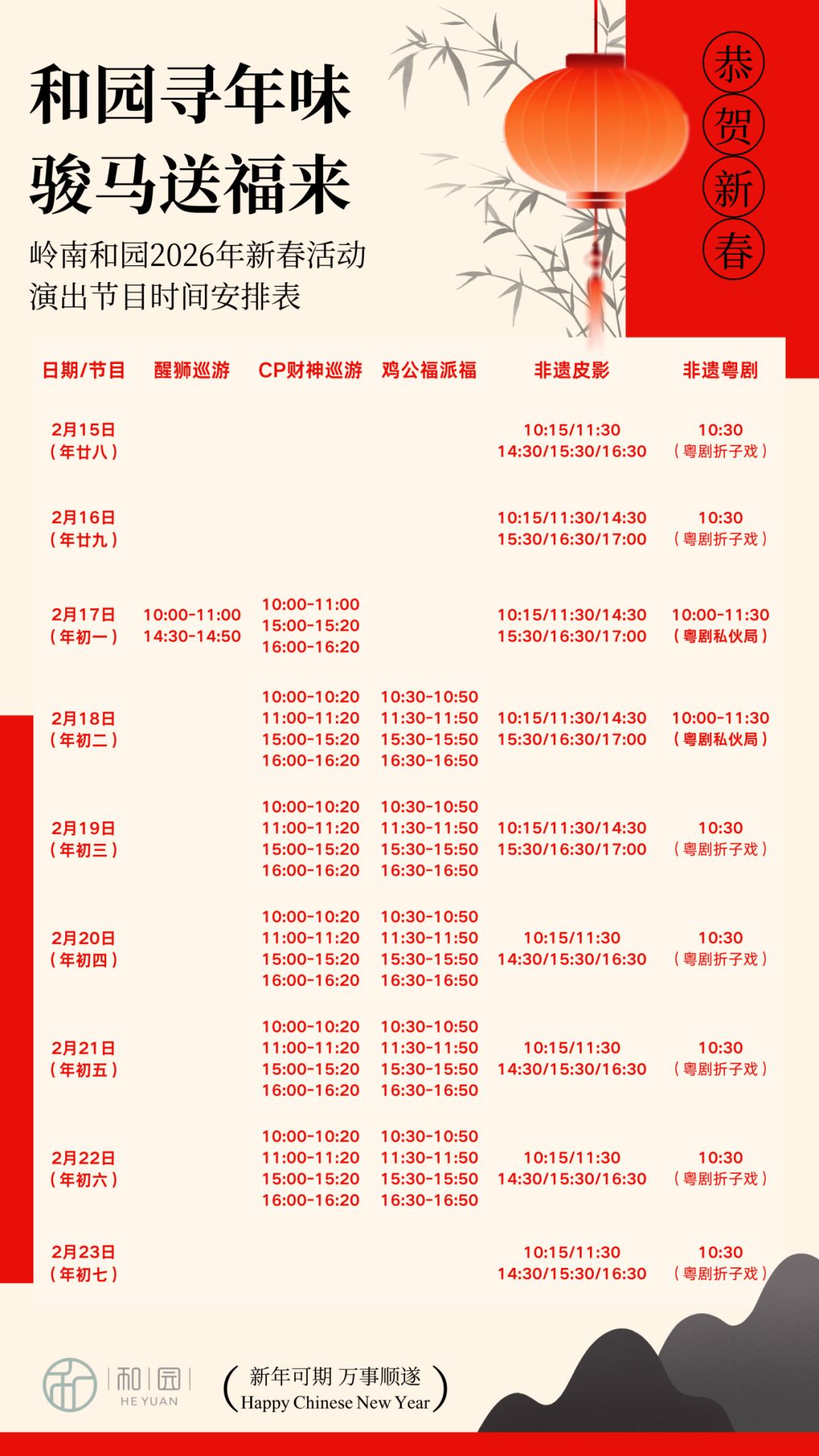 活动时间:2月17日至2月23日(年初一至初七)9:00-17:30