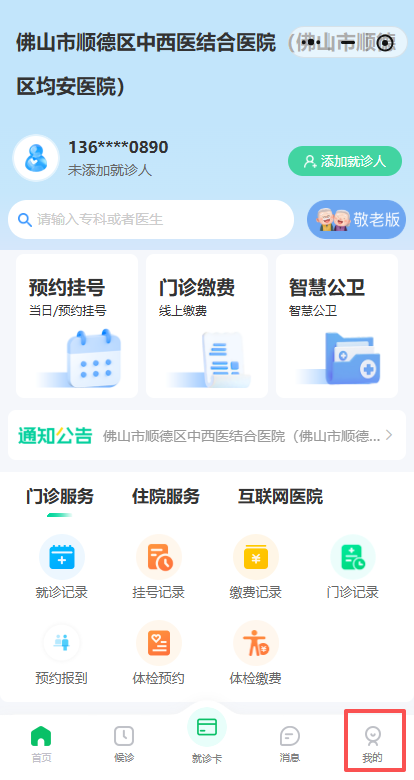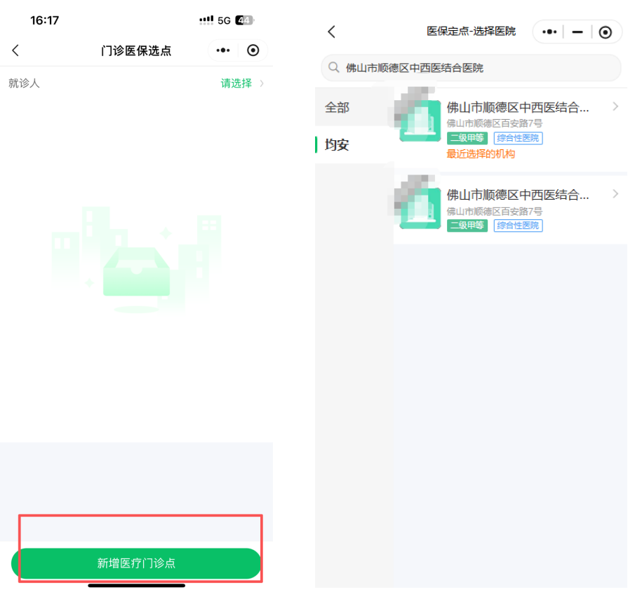 在“我的”选择医保定点——“新增医疗门诊点”——搜索并选择“佛山市顺德区中西医结合医院”就可享受医保报销服务。
