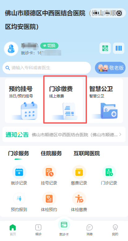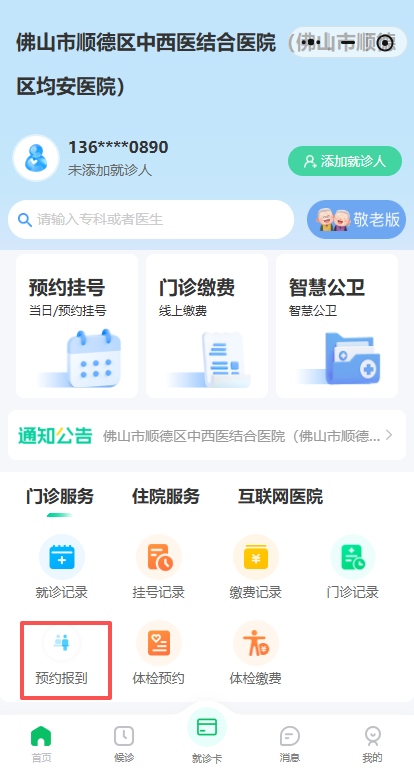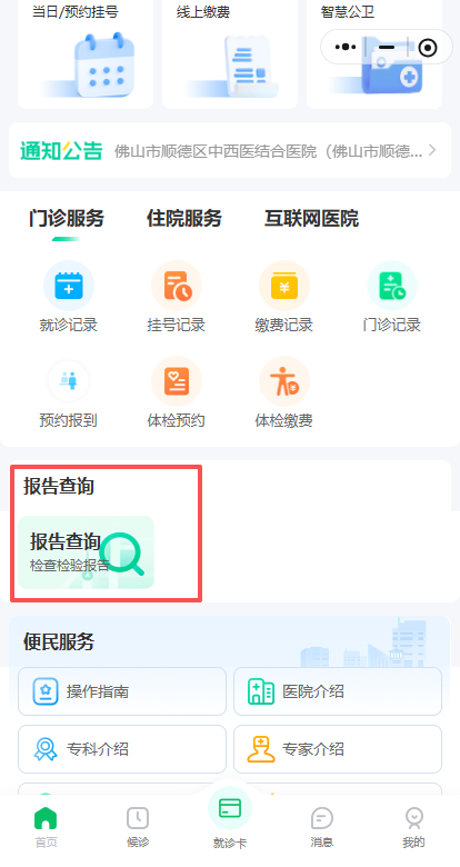打开顺德区中西医结合医院微信服务号或“健康顺德”小程序;