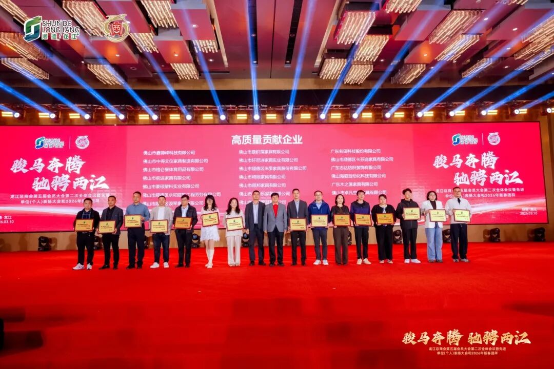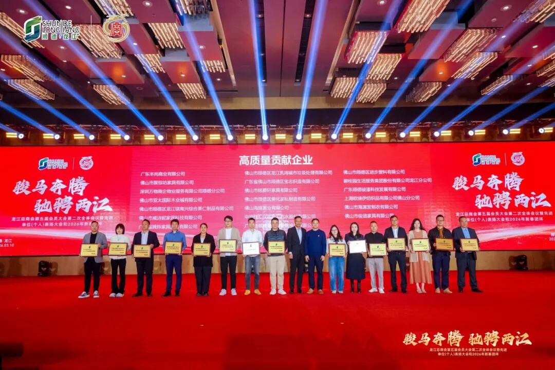 为树立标杆、凝聚力量,激励全镇上下奋楫争先、干事创业,共同书写龙江高质量发展新篇章,大会现场,广东联塑科技实业有限公司、广东德弘重工有限公司、广东联塑机器制造有限公司、广东精一家具股份有限公司、广东南兴天虹果仁制品有限公司等多家在2025年度表现突出的企业获颁“高质量贡献企业”。