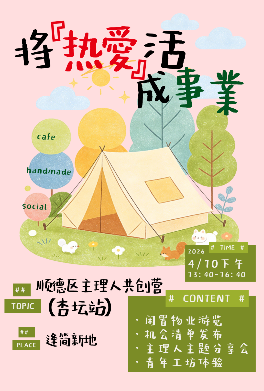 无论你是18-40岁青年主理人,怀揣梦想的青年创业者、艺术创作者、非遗青年从业者,还是想扎根水乡、探索创业可能的青年大学生,欢迎报名主理人共创营(杏坛站)。